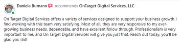 OnTarget Digital Services, LLC launched its digital marketing services company back in January 2019 to help businesses develop a positive online image and search presence. This month, they are announcing another new program to increase online referrals and gain valuable feedback from their clients’ customers.